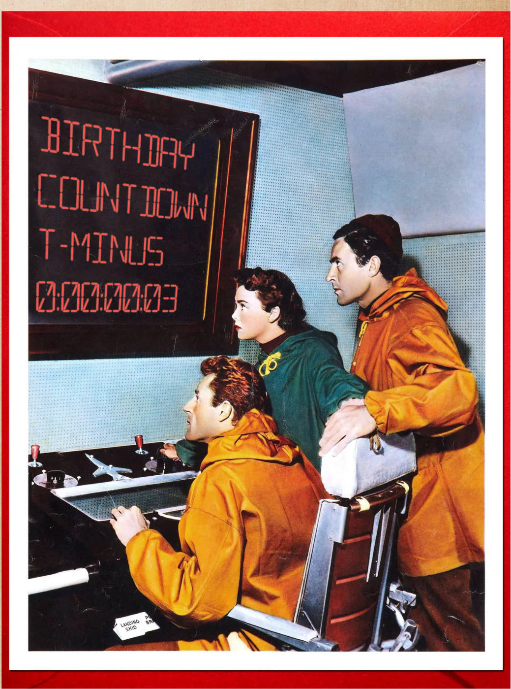 5-4-3-2-1-BIRTHDAY! Celebrate the countdown to fun with this retro sci-fi birthday card for the astronaut in your life!